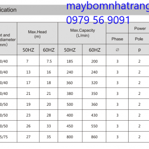 3HP 3∅ 380V đường kính hút/xã 50/50mm |