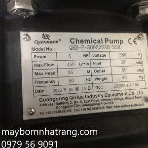 | Máy bơm QHB-F-40012EAH-SSH được sản xuất bởi Công ty TNHH Thiết Bị Công Nghiệp Quảng Đông Qihua với thương hiệu QEEHUA là công ty chuyên hoạt động sản xuất động cơ máy bơm hóa chất , máy bơm đẩy cao , các loại máy bơm hóa chất công nghiệp, máy bơm màn khí nén, máy bơm chìm inox ….. Ngoài ra còn sản xuất các linh phụ kiện có liên quan như: Phốt, cánh quạt, guồng, van v.v… |